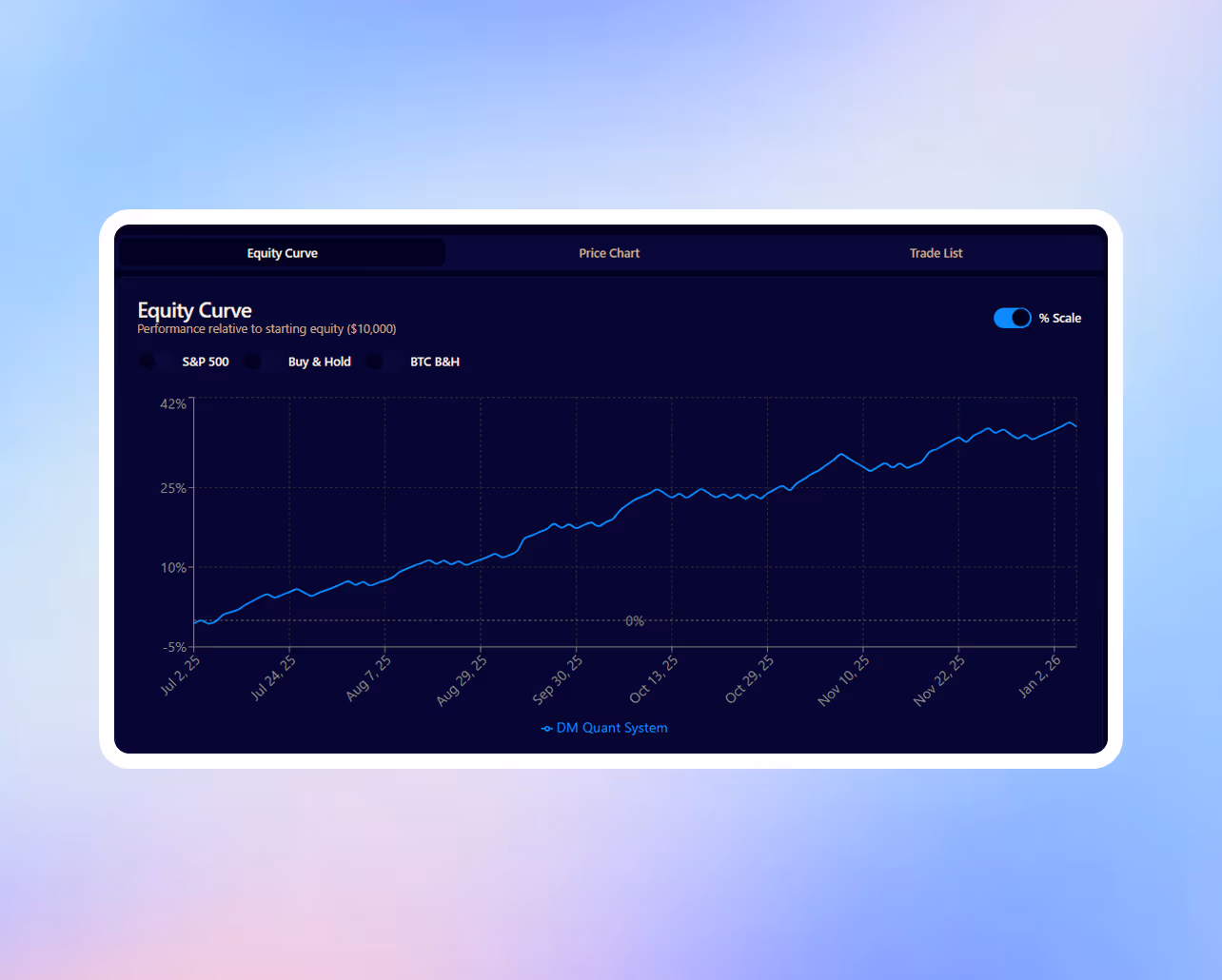 No. The system has been tested over multiple years and market conditions, with every trade and metric fully logged and verifiable.